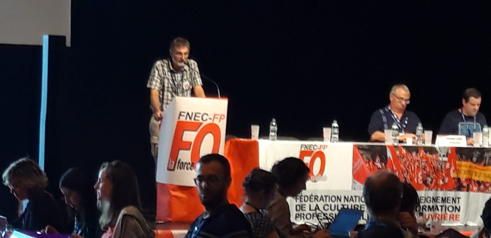 Chers camarades,Je m’adresse à vous au titre de mes mandats au CNED.Les conditions de travail des personnels du CNED ne cessent de se dégrader depuis plus de 15 ans de réorganisations successives et la mise en place de méthodes manageriales autoritaires que les personnels ne supportent plus.En début d’année 2019, le CNED a signé avec ses ministères de tutelles son contrat d’objectifs et de performance COP.Ce COP prépare la filialisation de l’établissement en 2 structures :Une structure chargée de la mission de service public, l’académie numérique.Une structure du domaine concurrenciel vouée à devenir un EPIC donc vouée à la privatisation à plus ou moins long terme.La création de l’académie numérique est susceptible d’avoir des conséquences dans l’ensemble du secteur de l’éducation nationale.Je cite le COP : L’académie numérique pourrait être la tête de pont de la diplomation et de la certification à distance pour les établissements en présence et les établissements à l’étranger.Le CNED pourrait donc délivrer des diplômes !Le CNED teste actuellement des solutions de surveillance d’examen à distance ! Cela s’appelle proctoring, rien à voir avec proctologue ! La traduction du dictionnaire indique « surveillance robotisée et locale à distance ».Le CNED organise les remplacements de courte durée dans les collèges par un avatar numérique « Jules ».Le CNED pourra assurer à distance les activités non proposées en Lycée dans le cadre de la réforme du Lycée.Les implications sont donc nombreuses dans l’enseignement en présence.En plus de ces réorganisations, la direction du CNED souhaite rouvrir le dossier temps de travail. Réouverture du dossier temps de travail pour nous faire travailler plus (40 à 50 minutes par jour)! et dans le but d’économiser entre 50 et 100 ETP !Donc de supprimer entre 50 et 100 postes sur environ 1000 agents.Force Ouvrière n’acceptera pas.Dans ce contexte, il est impératif de maintenir et renforcer l’implantation de FO au Cned.Je profite donc de cette tribune pour lancer un appel aux sections départementales du SNFOLC, du SNUDI FO et du SPASEEN FO.Dans moins d’un an auront lieu les élections au conseil d’administration et au conseil d’orientation du CNED. Nous devons préparer des maintenant ces élections car nous en connaissons la difficulté. Pour cela nous avons besoin de connaître les adhérents de vos sections qui sont affectés au CNED : personnels administratifs mais surtout enseignants du 1er et du second degré affectés en postes adaptés PACD et PALD au CNED et travaillant à domicile. La connaissance de ces syndiqués est indispensable pour préparer et remporter ces élections.Je vous remercie d’avance..